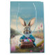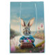 Sacola Para Presentes Média Coelhinho de Páscoa bonito em jaqueta azul