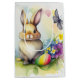 Sacola Para Presentes Média Coelho de Páscoa com Aquarela com ovos de Páscoa