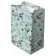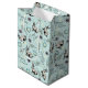 Este Rabbit Páscoa e Ovos Blue Medium Gift Bag para crianças apresenta ilustrações feitas à mão de coelhos, folhas e flores contra um clássico fundo azul pastel. Personalize com o nome da criança.
