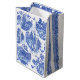 Um mundo azul branco e azul branco e selvagem! Eu peguei o popular padrão de cerâmica de chinoiserie e criei novas ilhas cheias de templos, exuberantes animais de floresta de todos os tipos, cada um decorado com meus padrões florais azuis e brancos. As criaturas incluem coelhos coelhos, veados, raposas, pássaros, esquilos, felinos sortudos e muito mais...nas águas, há pequenos barcos e baleias. O fundo é branco nítido. Esta combinação única, mas elegante, de padrões e cores tradicionais com animais vivos e flores estilizadas seria um prazer para qualquer um, em qualquer ocasião. Trabalho de arte e design de direitos autorais originais de Tuzi Williams.
