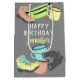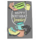 Este saco de presentes personalizado é perfeito para embrulhar presentes com um tema estranho. O saco apresenta ilustrações de botas de caminhada, binóculos, canecas de esmalte e malas-fantasma em pastéis brilhantes de verão contra um fundo de cinza escura. Está pronto para ser personalizado com o seu próprio slogan ou saudação e o nome do seu destinatário.