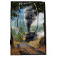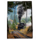 Locomotiva número 19cor imagem de um comboio a vapor que se aproxima nas vias férreas que torce fumaça das cinzas do seu empilhador A via é flanqueada por árvores de cada lado