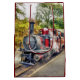 Um trem a vapor vintage restaurado de forma elegante.