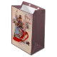 Saco de presente de Natal Comprado com casal Vitoriano e o seu pequeno cão caminhando para casa através da neve.