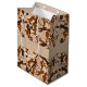 Saco lustroso médio do presente com uma imagem de homens do futebol no pêssego e de duas máscaras do marrom no creme. A fita do pêssego tem o texto customizável que lê a "conversa com seus pés. Jogo com seu coração." See que combina o grande saco do presente. Veja a coleção inteira do saco do presente do dia dos pais na seção ESPECIAL dos favoritos para festas dos TOQUES |.