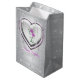 Sacola Para Presentes Média Coração De Prata E Flores Roxas