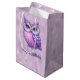 Sacola Para Presentes Média Coruja Roxa Brilhante num Fundo Roxo Brilhante