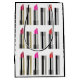 Um padrão divertido de batom colorido em tubos de cromo. Muito feminino e moderno. Parece uma linha do horizonte da cidade de batom.