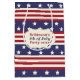 Comemore o quarto de julho e de verão com este saco bonito do presente do teste padrão de bandeira dos Estados Unidos. O design é inspirado pela bandeira americana e inclui a bandeira dos Estados Unidos alterna nas máscaras de azul, de vermelho, e de esbranquiçado. Na bandeira central, use o modelo para adicionar facilmente três linhas de texto. Este design é perfeito para um partido do Dia da Independência e quando você quer comemorar os EUA. O design aparece em ambos os lados. Contacte a loja de FancyCelebration se você quer pedir em um grande saco.