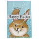 Procurando esconder ovos para crianças nesta bolsa de presentes? Seus filhos vão adorar este coelho pintado à mão em um fundo azul claro pontilhado. A pintura está em ambos os lados, o saco mostrando o coelho escondendo os ovos. Este é azul e há um rosa para a garota. Você também pode encontrar um envelope fofo e uma carta do coelho da Páscoa para as crianças em azul ou rosa na mesma coleção.