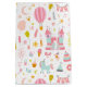 Adicione um toque personalizado fofo ao presente de aniversário da sua garotinha com esta adorável bolsa de presentes de padrão rosa. Saco de presentes tem itens femininos divertidos como um unicórnio, balão de ar quente, boneca, balão, bolo e cupcake. Adicione um primeiro nome, monograma inicial e coração para um toque personalizado. Saco de presentes faz uma doce adição a um aniversário, Natal ou outro presente de feriado, especialmente para meninas!