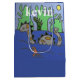 Esta bolsa colorida de presentes para crianças apresenta um dinossauro de desenho animado num lago e um nome editável. Perfeito para todos os jovens entusiastas do Dinossauro.