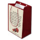 Este é um na moda, festivo NATAL BAUBLES Média de Presente, com borbulhas vermelhas no aspecto da gliteria. Na frente, a mensagem lê BÊNÇAS DE NATAL ESPECIALMENTE PARA VOCÊ. Pelo contrário, há uma mensagem cristã inspiradora baseada na passagem Bíblia dos Números 6, que começa MAIO O SENHOR TE ABENÇOA E TE MANTÉM, e que foi adaptada como BÊNÇÃO DO NATAL. Todo o texto é PERSONALIZÁVEL, de modo que você pode ajustar e/ou substituir por seu próprio texto. Os itens de jogo estão disponíveis, e este saco de presentes faria um toque adorável.