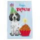 Feliz aniversário com este design bonitinho, com um cachorrinho inglês que veste chapéus de coquetel com um cupcake de aniversário. Feliz aniversário na frente e "Faça um Desejo!" nas costas. O texto pode ser facilmente alterado; basta clicar no botão personalizar.