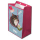 Sacola Para Presentes Média Custom Cute Gray Cat with Mur and Love