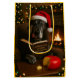Individually designed Christmas gift bag featuring a beautiful Great Dane dog reading a book entitled 'Cheese Tax at Home Regulations 2025'.