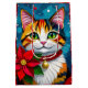 A sweet Christmas gift bag with a tabby and Poinsettia flower.