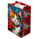 Sacola Para Presentes Média Cute Tabby Cat and Poinsettia Christmas