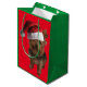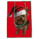 Sacola Para Presentes Média Cute Yorkie Puppy Vestindo um chapéu de Papai Noel