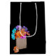 Buquê de margarida colorido em uma bolsa de papel marrom em preto para aniversário geral.