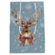 Sacola Para Presentes Média Deer With Plaid Bow Christmas Snow Falling
