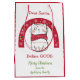 Esta bolsa de presente de Natal fofo apresenta um desenho de um gato malvado, todo embrulhado numa corda de luzes de Férias. Atrás do gato está um arco-íris floco de neve vermelho. O texto na bolsa diz "Papais noeis Caros, Definir BOM", com sua assinatura personalizada em verde logo abaixo. Ambos os lados têm a mesma imagem e o mesmo texto, com os lados e as bordas a corresponderem a vermelho.