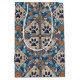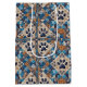 Um padrão geométrico incorpora estampas grandes e pequenas de pata de cão, dispostas em design simétrico e colorido