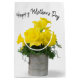 Um buquê de flor daffodil amarelo brilhante em um copo de estanho vintage em fundo branco para a mãe no Dia de as mães. O texto pode ser editado ou excluído.