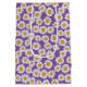 Flores margaridas e dísquinas, design num fundo roxo.