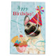 Feliz aniversário com este design bonitinho com um sorridente e festeiro Bulldog Francês vestindo chapéu com sorvete. "Tenha um bom aniversário" na frente e "Parabéns" nas costas. O texto pode ser facilmente alterado; basta clicar no botão personalizar.