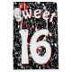 Balões vermelhos, brancos e pretos sobre fundo brilhante preto para 16 anos.