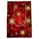 Sacola Para Presentes Média Dourado Natal dos Flocos de Neve Vermelhos