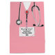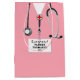 Saco de doação de graduação com escovas de hospital cor-de-rosa e arte estetoscópica. Edite texto para adicionar o nome de médico, assistente médico ou formando de enfermeiro.