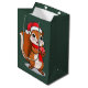 Ce design adorable met en scène un écureuil brun portant un bonnet de Noël rouge et blanc ainsi qu’une écharpe rouge à franges blanches. L’écureuil est debout sur ses pattes arrière et tient une boule de Noël rouge décorée de motifs de flocons de neige blancs. Ce design est parfait pour les décorations ou illustrations de Noël, apportant une touche de charme et de festivité à la saison des fêtes.