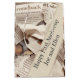 Este saco de presentes editável é perfeito para um aniversário de Casamento de 11 ruas, ele apresenta um fundo de jornal, acompanhando o tema do papel. Os nomes e saudações podem ser alterados para torná-los verdadeiramente pessoais. Ideal para preencher com presentes correspondentes para este aniversário especial e para juntar um cartão correspondente.