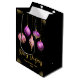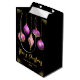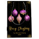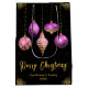 Celebrate the season in style with this elegant black Christmas gift bag featuring five purple and gold hanging ornaments, scattered golden stars, and customizable text. Add your family name and year for a personal touch that elevates any holiday gift. Perfect for festive packaging, party favors, or under-the-tree presentation.