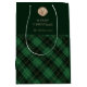 Add an elegant touch to your holiday gift giving with our festive green plaid personalized gift bag. Featuring a classic green plaid pattern, this bag is adorned with dark border at the top. The border is elegantly accented with a stunning golden stag silhouette stamp and the festive message, “Merry Christmas.” The reverse side showcases the classic green plaid pattern, adding a touch of timeless elegance.