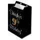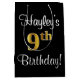 Este na moda, sofisticado e elegante design de sacola de presente temático de aniversário apresenta o número ordinal "9º" com um padrão de gradiente tipo ouro imitação/falsa, juntamente com uma mensagem de saudação de aniversário e um nome de destinatário personalizado em uma fonte estilo script. O fundo é preto colorido. Um saco de presentes como este pode ser uma maneira divertida de embrulhar um presente de aniversário ou de ser dado a alguém que comemora seu nono aniversário. [~Z0000513]