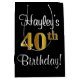 Este design de gingau de na moda, luxuoso e sofisticado, com tema de aniversário, apresenta o número normal "40º" com uma aparência grande de falso/imitação em ouro, além de uma mensagem de saudação de aniversário e um nome de destinatário personalizado em uma fonte estilo script. O fundo é preto colorido. Um saco-presente temático de aniversário como este pode ser usado quando se dá um presente ou presente em celebração ao aniversário de 40 anos de alguém. [~Z0000513]