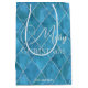 Sacola Para Presentes Média Elegante padrão argola azul oceano Natal feliz