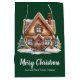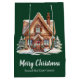 Esta linda bolsa de presente de festa de Natal verde personalizada para corretor de imóveis tem o nome da sua empresa de imóveis personalizado e mensagem de feriado em tipografia verde elegante, juntamente com uma bela imagem de uma casa no inverno cercada por pinheiros. Bolsas de presente de Natal profissionais para marketing de negócios de imóveis.