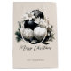 Elegante design de Natal de marfim bege preto com Enfeites de natal de marfim preto e marfim, decoração, flores de marfim, ramos de pinheiro e arco de cebola preta, e com seu texto personalizado.