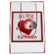 Um design de coração de enfermeira gráfica do artista/designer Charmaine Paulson em um saco de presente personalizado.