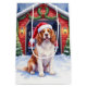 Share holiday cheer with this festive Christmas card featuring an English Springer Spaniel wearing a Santa hat outside a warmly decorated fire station. Gentle snowfall, glowing lanterns, and a classic fire truck add a cozy watercolor holiday touch perfect for firefighters and dog lovers. The blank interior provides room for personal messages, making it ideal for seasonal appreciation, heartfelt gifting, and breed-themed stationery collections.