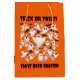 Uau! Isso vai ser um doce! Se você acha que Hallowe'en é um dos dias mais divertidos do ano, então este saco de presentes caprichosos, que apresenta a observação macabra "Você foi hospedado!" estirado em branco com uma foz assustadora gerada por IA, de fantasmas celebrando sua grande noite em um fundo laranja de abóbora, é uma forma excelente de dizer truque ou tratar na porta na porta a hora mais bonita do ano (e use um ranhura real)! Design © W.H. Sim. Mais informações em zazzle.com/word2art