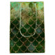 Sacola Para Presentes Média Escamas de Peixe de Sirena Brilho Verde e Dourado