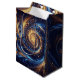 Uma espiral de azul e ouro reais inspirada pela magia do espaço nesta design de arte moderna.