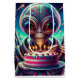 Engraçado alienígena extraterrestre comendo bolo de aniversário com balões que fazem aniversário de Gift Bags.
