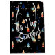 Sacola Para Presentes Média Esquiador De Natal Em Flocos De Neve A Preto