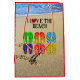 Eu amo a praia, chinelos na areia, saco de presentes feito por medida.